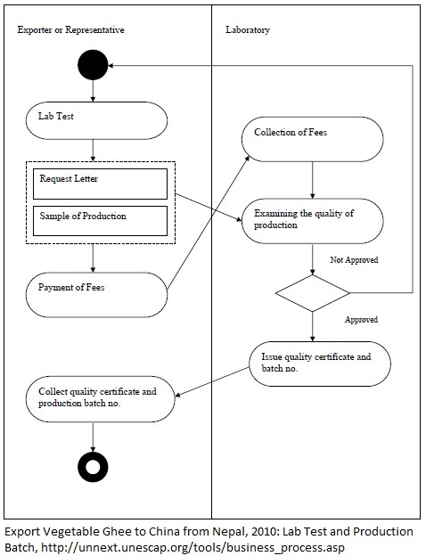 1. The exporting company sends a sample of the product to a laboratory established by the Government of Nepal. 2. After completing the quality test, the laboratory issues a quality assurance certificate to the exporter.
