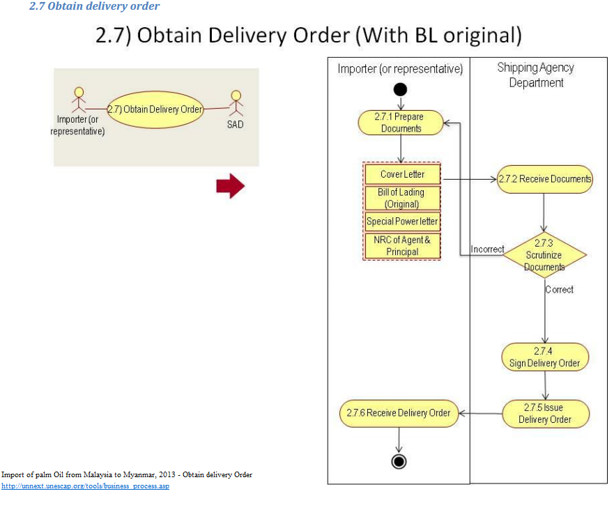 1. - Importer prepares the Bill of Lading to apply for the Delivery Order at MPA - Shipping Line Agent prepares the Delivery Order 2. The MPA receives the submitted Bill of Lading and e-Delivery Order via the port’s EDI system. Once all documents meet the requirements, MPA releases the e-Delivery Order. 3. Importer collects the e-Delivery Order.
