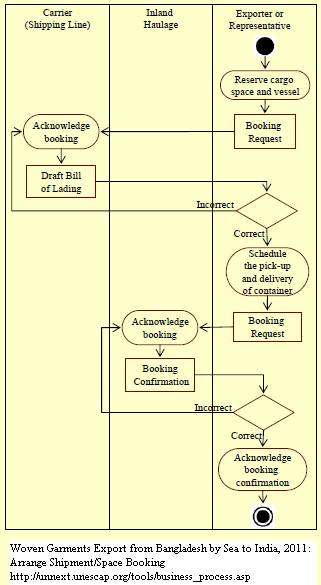 1. The exporter requests a space with a shipping line. In most cases, an email is sent to the shipping line with details of the shipment. 2. Based on the request, the shipping line issues a draft Bill of Lading for consideration by the client. 3. Based on the document and confirmation by the shipping line, the exporter schedules pick-up and delivery of the container with the inland haulage company. 4. A booking confirmation is then issued by the latter and this document is kept by both the parties for executing of further activities.