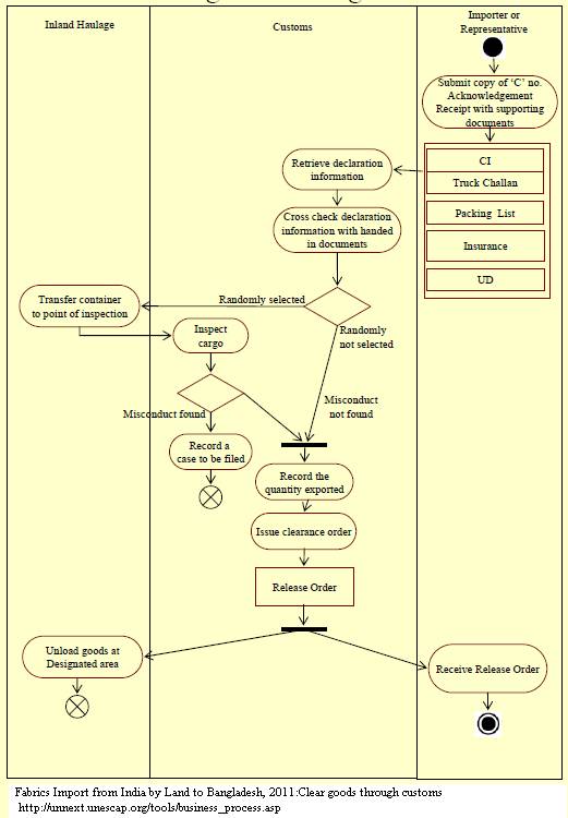 Goods are unloaded at the customs area and inspection is carried out by the customs officials to confirm compliance with the Bill of Entry. If no misconduct is found, customs signs the UD and issues a Release Order from the customs controlled area.