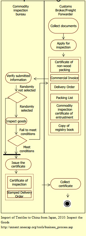 Customs inspect goods at check point (Import to CHN from JPN/Textiles)