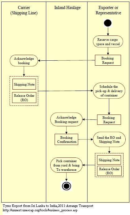 Arrange transport (shipping) (Export from LKA to IND/Rubber tyres)