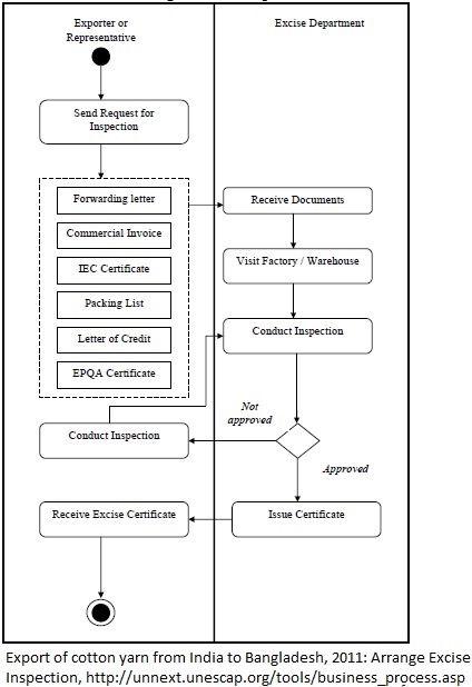 Excise inspection (Export from IND to BDG/Cotton yarn)