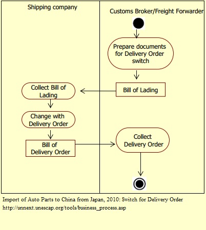 1.The customs broker switches the Bill of Lading with a Delivery Order issued by the shipping company. The shipping company charges about RMB 200 per Bill of Lading. This is a quick process as no government agency is involved