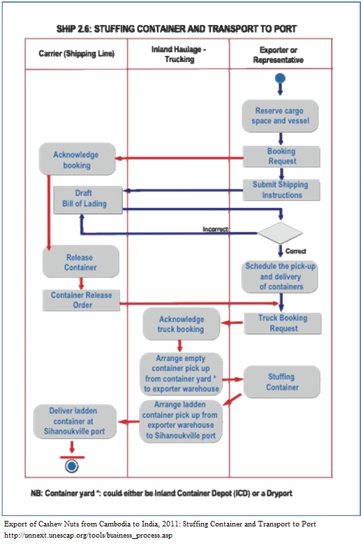 Load container and transport to port (airport) of departure (Export from KHM to DEU/Silk)